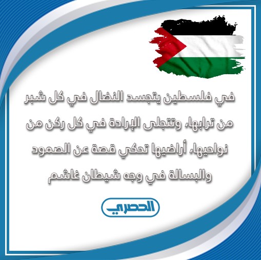 - في فلسطين يتجسد النضال في كل شبر من ترابها، وتتجلى الإرادة في كل ركن من نواحيها، أراضيها تحكي قصة عن الصمود والبسالة في وجه شيطان غاشم.